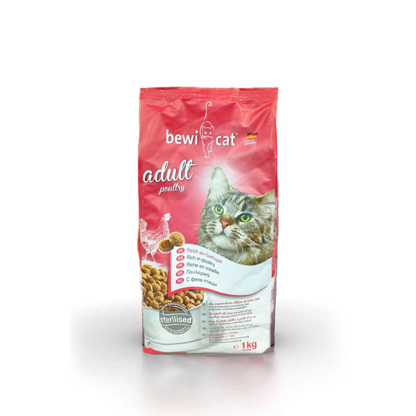 Bewi Chicken Sterilized 1KG – Nutritious, high-protein chicken food for sterilized cats. Supports healthy weight and overall well-being with natural ingredients.