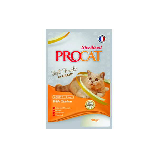 Procat Pouches – Wet Food – Chicken sterilised – 100g